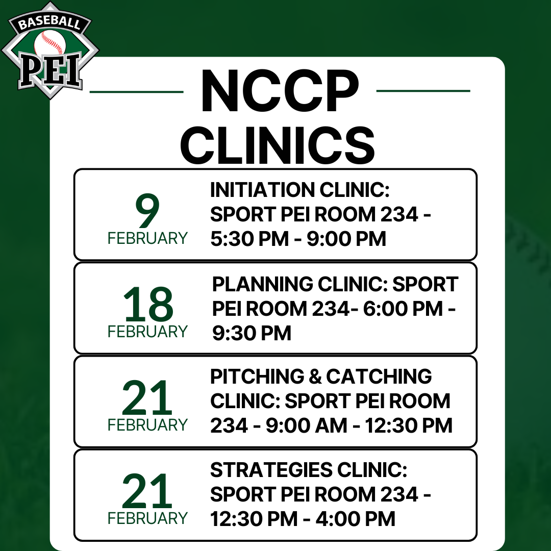 Baseball PEI is excited to roll out this winter’s lineup of NCCP coaching clinics. Whether you’re new to coaching or looking to advance your certifications, we’ve got sessions to support your development.