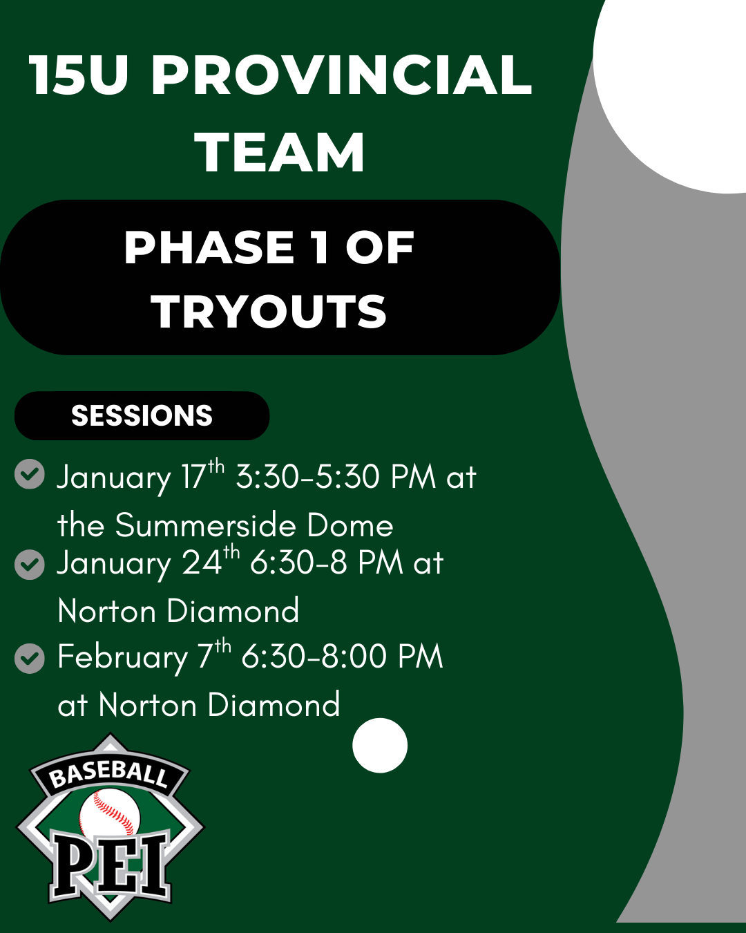 The 15U Provincial Team is kicking off Phase 1 of tryouts with upcoming sessions.